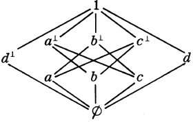 In L10, let p É q = 1 iff p £ q, = Æ otherwise. With É thus, É1 holds: if p £ q, then p É q = 1 and É1 is p £ q; if not-(p £ q), then pÉq = Æ and É1 is Æ £ q. So far as É2' is concerned, we have, by definition of L, Lr = 1 iff r = 1, = Æ otherwise. But as we have noted, for S5's É with r as in É2', Lr = r; if r = 1 and r Ù p £ q, then p £ q making p É q = 1 and so r £ p É q. If r ¹ 1, then by r = Lr we have r = Æ and so r £ p É q under any circumstances. But then :É1 and É2' obtain for L10 with É as indicated above. Since L10 is a non-modular OML, it then follows that the definition of S5 strict implication (or any strict implication included in S5) does not induce modularity and so a fortiori does not induce distributivity on an OML.